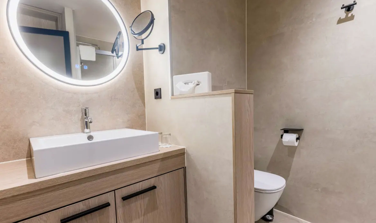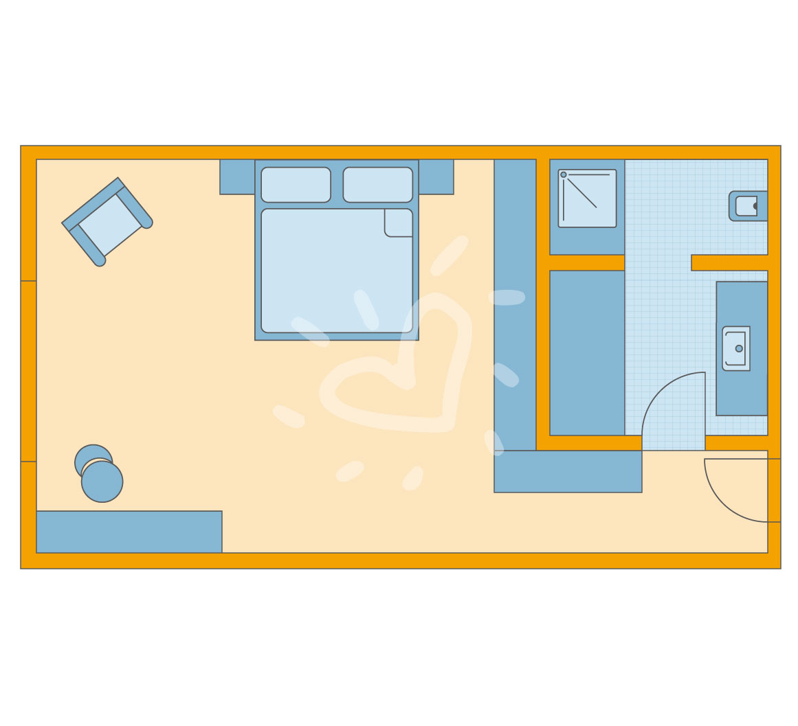 Alle Zimmer sind mit Dusche, WC, Haartrockner, Kosmetikspiegel, Bademantel, Fernseher, Telefon, Radio, Safe und Kühlschrank ausgestattet. Alle Einzelzimmer sind Doppelzimmer zur Alleinbenutzung.SafeWLANTVKlimaanlageJuniorsuite