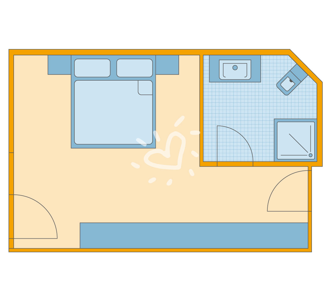 Ausstattung: Dusche, WC, Haartrockner, Kosmetikspiegel, Heizung, Fernseher/Radio, Safe, Telefon und Kühlschrank.SafeWLANTVKlimaanlageDoppelzimmer zur Alleinbenutzung