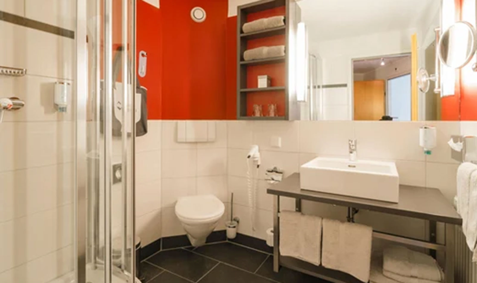 Ausstattung: Dusche, WC, Haartrockner, Kosmetikspiegel, Heizung, Fernseher/Radio, Safe, Telefon und Kühlschrank.SafeWLANTVKlimaanlageBestpreis-Zimmer