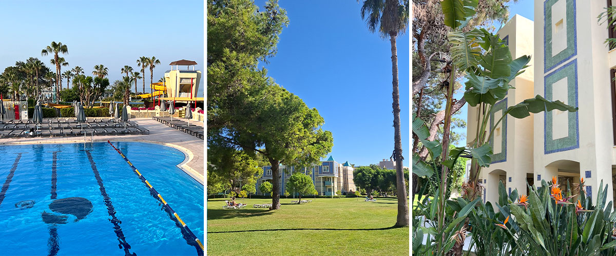 Der Robinson Pamfilya liegt in einer wunderschönen, grünen Anlage, die sehr gepflegt ist und sofort das typische Wohlfühlgefühl vermittelt. Besonders der herrliche Strand hat es uns angetan – breit, lang, weich und direkt vor dem Club.