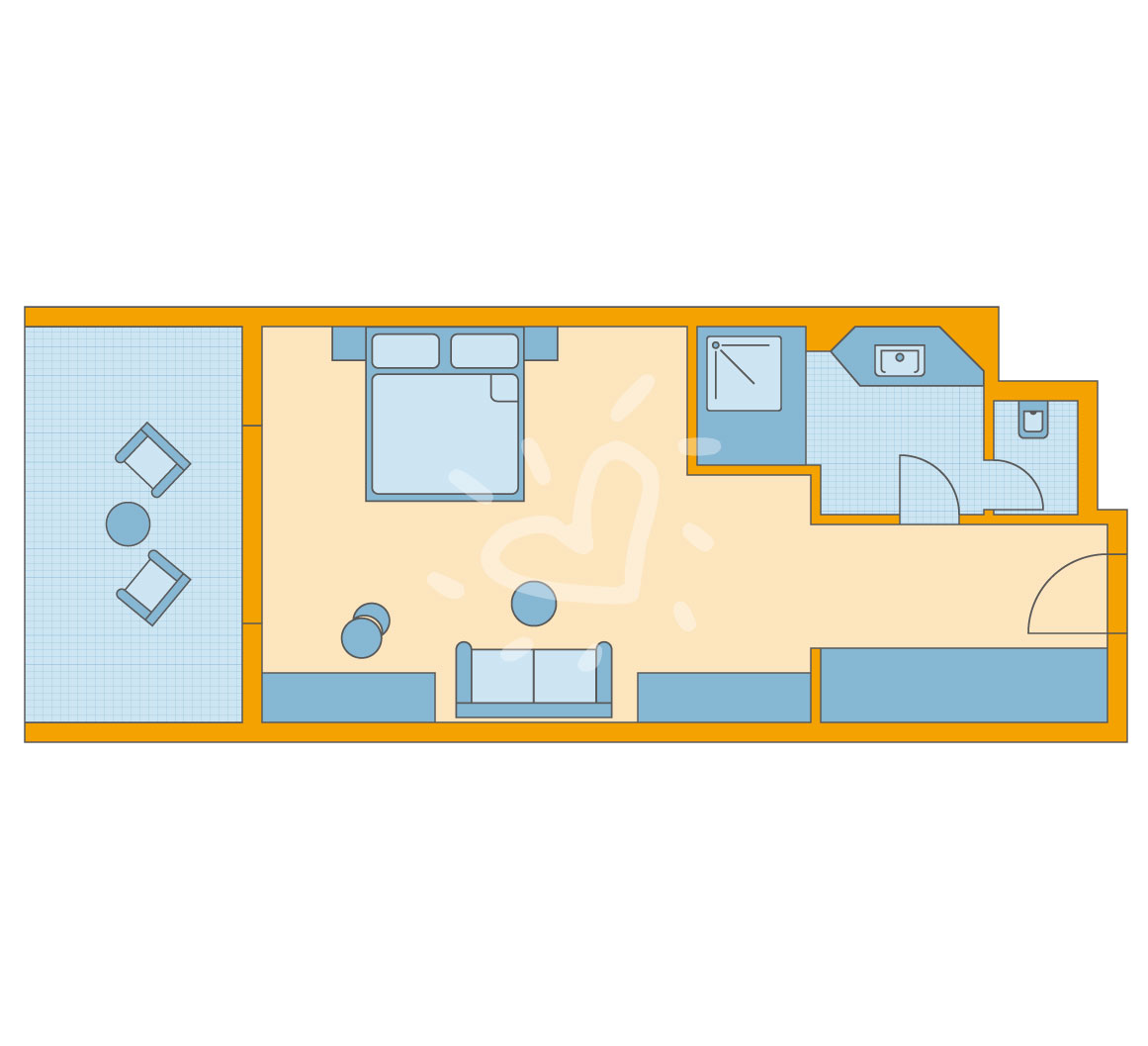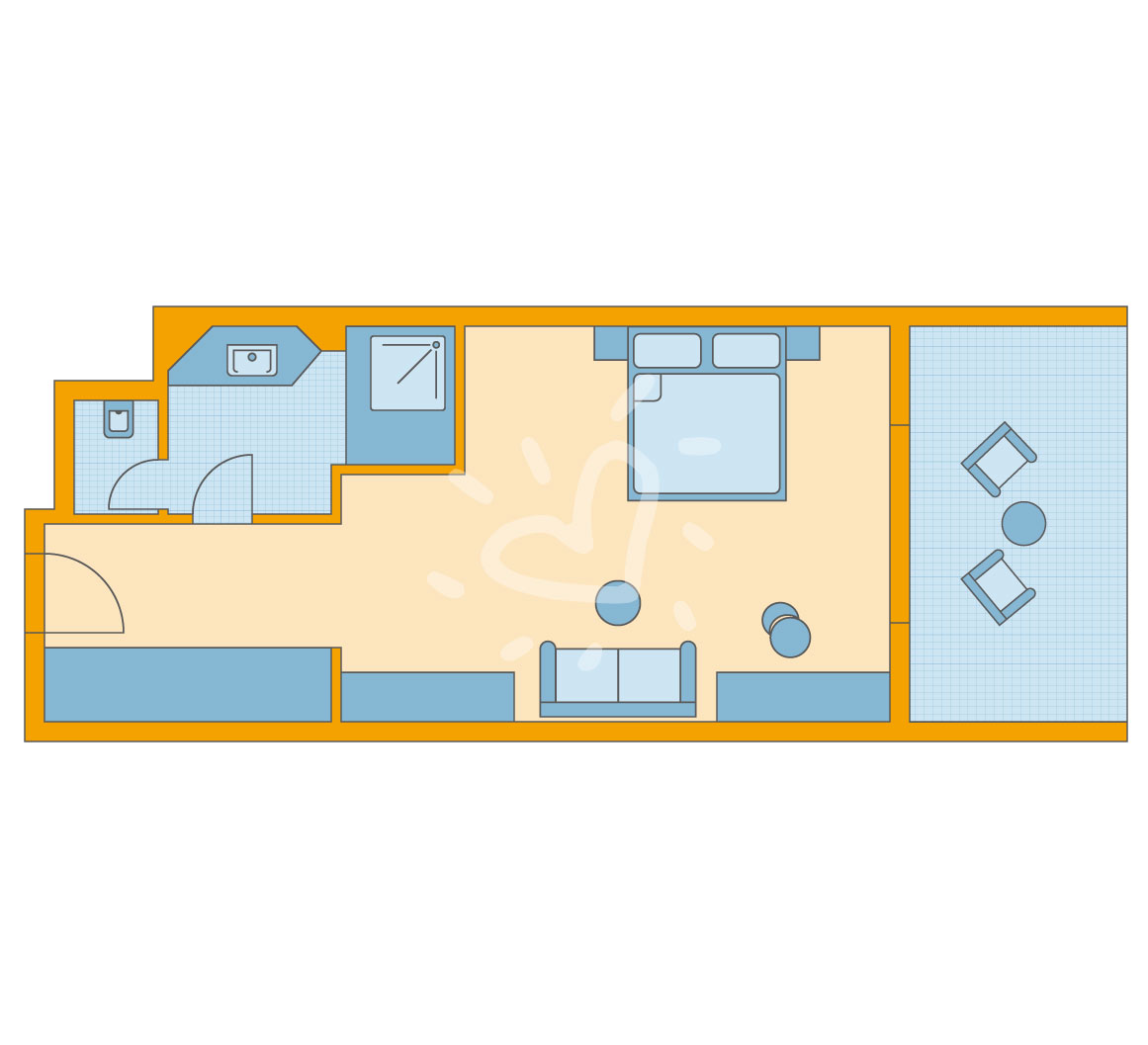 Klimaanlage: individuell regelbar, zentral gesteuert Fußboden: Fliesenboden Safe: ohne Gebühr Kühlschrank Telefon, Internet: WLAN/WiFi: ohne Gebühr, Fernseher: Flatscreen, deutsches Programm, Sat-TV Reinigungsservice: täglich Dusche, WC, Föhn, Kosmetikspiegel Terrasse: mit SitzgelegenheitSafeWLANTVKlimaanlageBalkonJunior Suite Classic Partial Sea View
