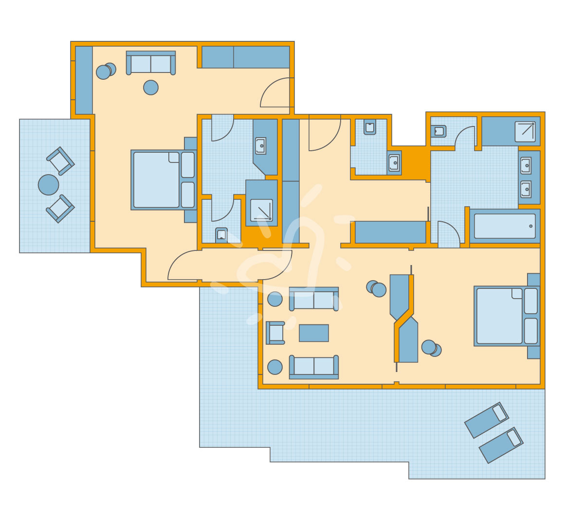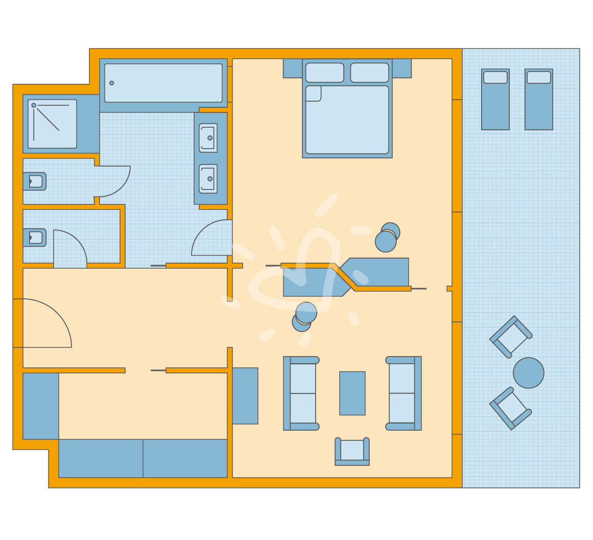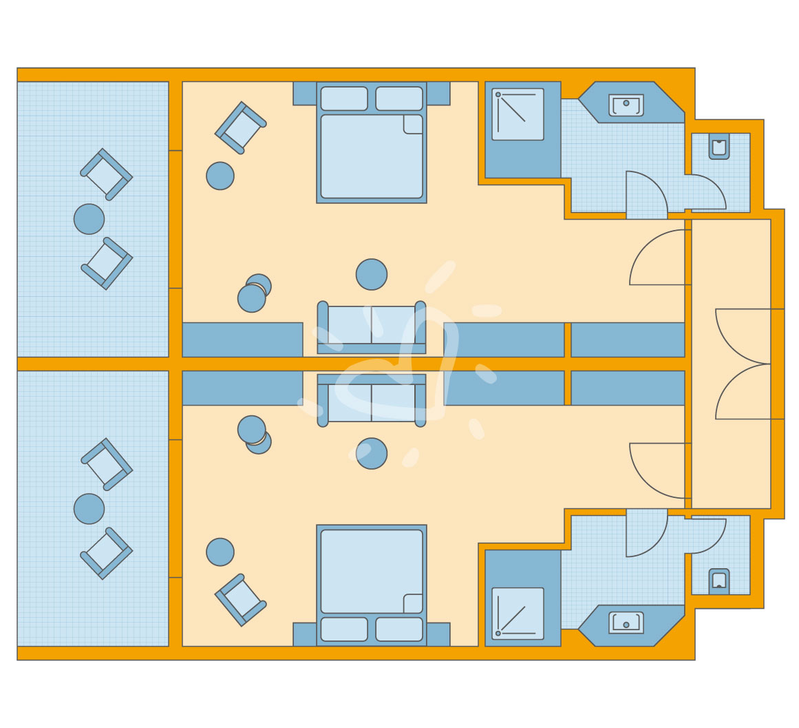 Details anzeigenNichtraucherzimmer, seitlicher Meerblick, ca. 45 m². Gesamtanzahl der Räume in diesem Zimmertyp: 2, Aufteilung wie folgt: bestehend aus 2 Zimmern (optisch getrennt durch Schiebetür), Wohnzimmer, 1 Schlafzimmer 1 Doppelbett (200x200cm, 2 zusammenstehende Einzelbetten), 1 Zustellbett (100x200cm), Babybett: ohne Gebühr Mindest-/Maximalbelegung: mind. 2 Erwachsene / max. 2 Erwachsene, 1 Kind von 2-14 Jahre und 1 Kleinkind unter 2 Jahren. Die Unterbringung der 3. Person erfolgt im Zustellbett.