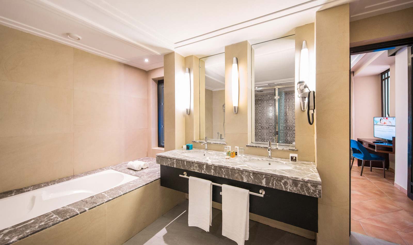 Klimaanlage: individuell regelbar, zentral gesteuert Fußboden: Fliesenboden Safe: ohne Gebühr Sitzecke Kühlschrank, Kaffee-/Teezubereiter Telefon, Internet: WLAN/WiFi, Fernseher: Flatscreen, deutsches Programm, Sat-TV Reinigungsservice: täglich Dusche, Badewanne, WC, separates WC, Föhn, Kosmetikspiegel Balkon: mit Liegen, mit SitzgelegenheitSafeWLANTVKlimaanlageBalkonSuite Classic Sea View