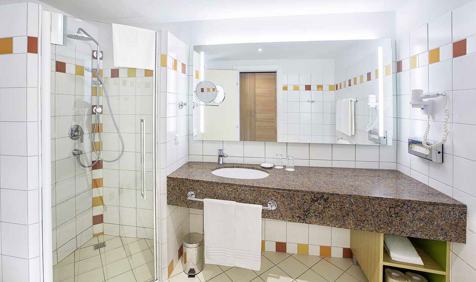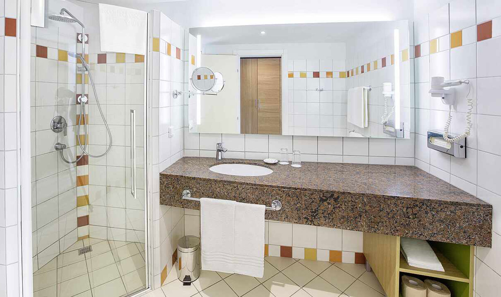 Klimaanlage: individuell regelbar, zentral gesteuert Fußboden: Laminat Safe: ohne Gebühr Kühlschrank Telefon, Internet: WLAN/WiFi: ohne Gebühr, Fernseher: Flatscreen, deutsches Programm, Sat-TV, Radio Reinigungsservice: täglich Dusche, WC, Föhn, Kosmetikspiegel Balkon oder Terrasse: mit SitzgelegenheitSafeWLANTVKlimaanlageSingle with Child Double Room Classic
